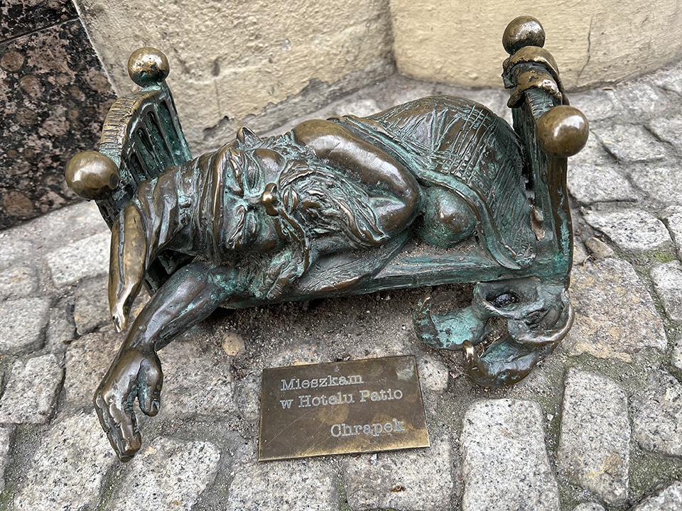 Among the little men dotted all over the city, you will also find several female gnomes. Going clockwise and in brackets where to find them, Krasnala Glamour (Kazimierza Wielkiego), Krasnala Księgarka (Oławska 18), Krasnala Lady Wolność (Rynek 58) and Krasnala Wojowniczka (Rynek 7).