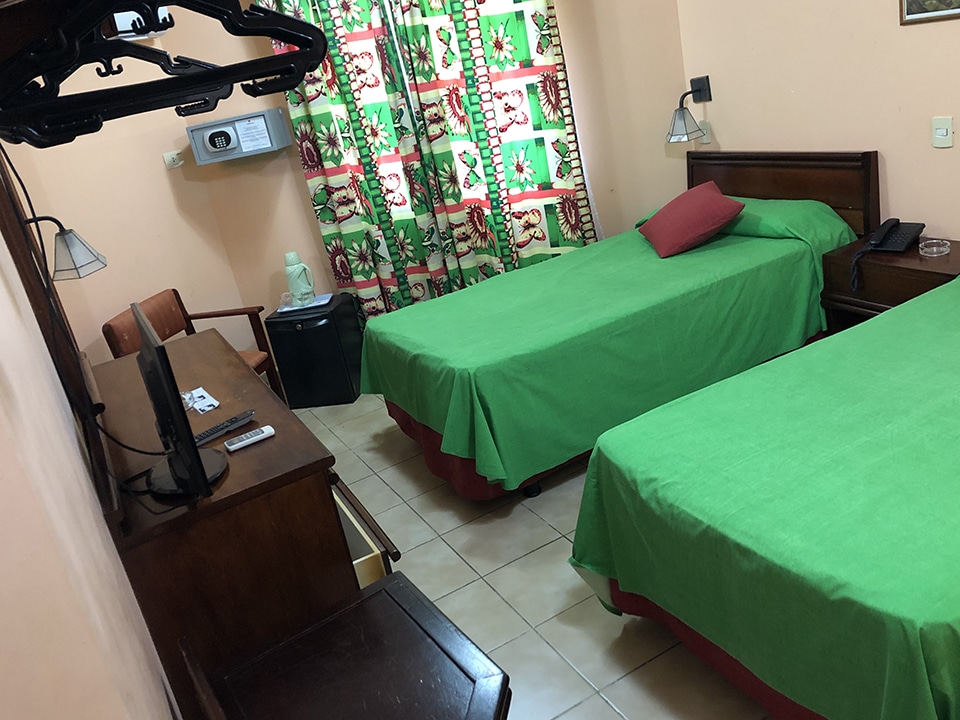 Heading back to our hotel, we finally got to see our room. It was fantastic and not at all what we expected. Typically Cuban in style and design. Set out with a mixture of small single and large shared shack type structures nestled between palm trees and gardens. We had a shack of our own.